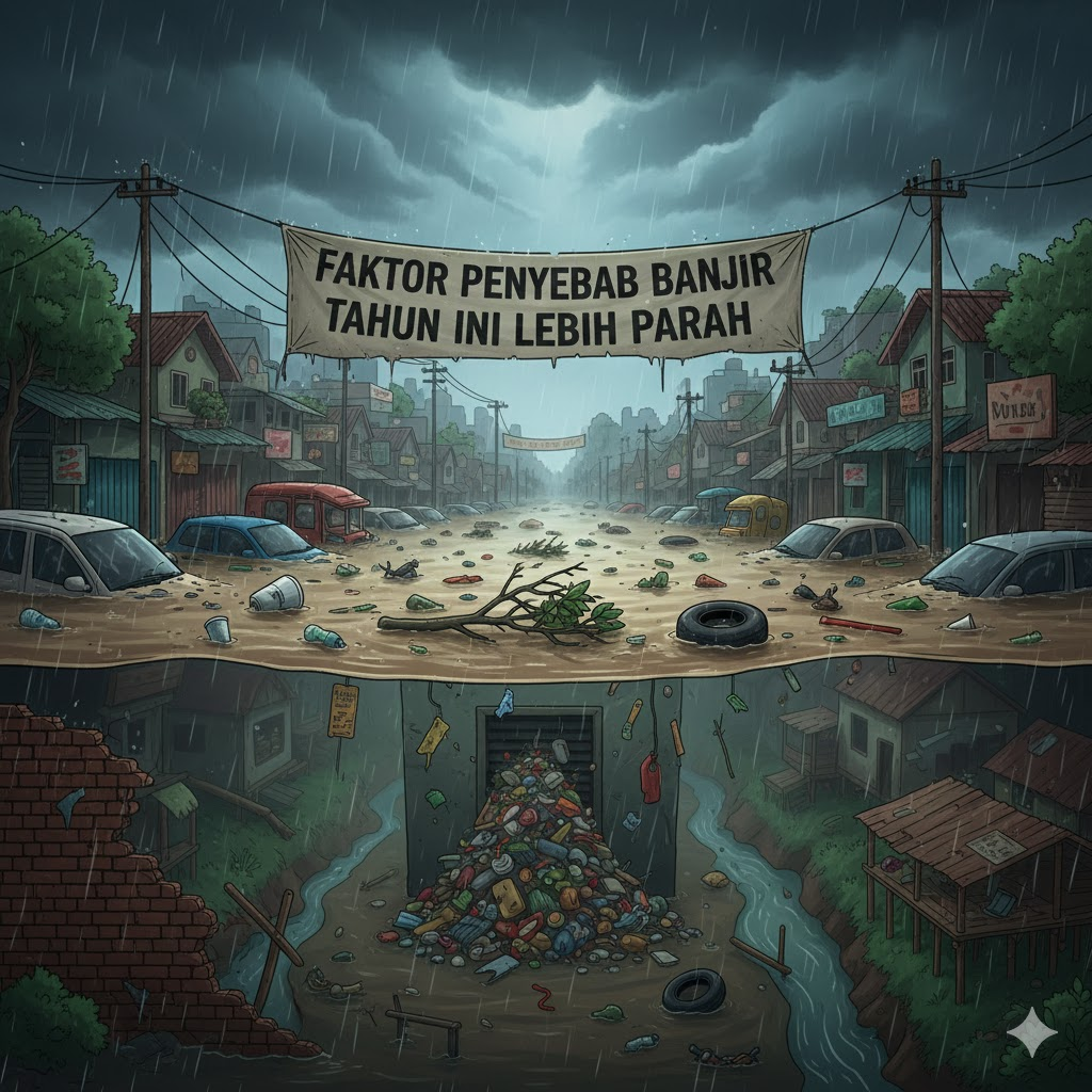 Ada beberapa faktor yang saling berkaitan yang membuat banjir 2025 terasa jauh lebih berat: