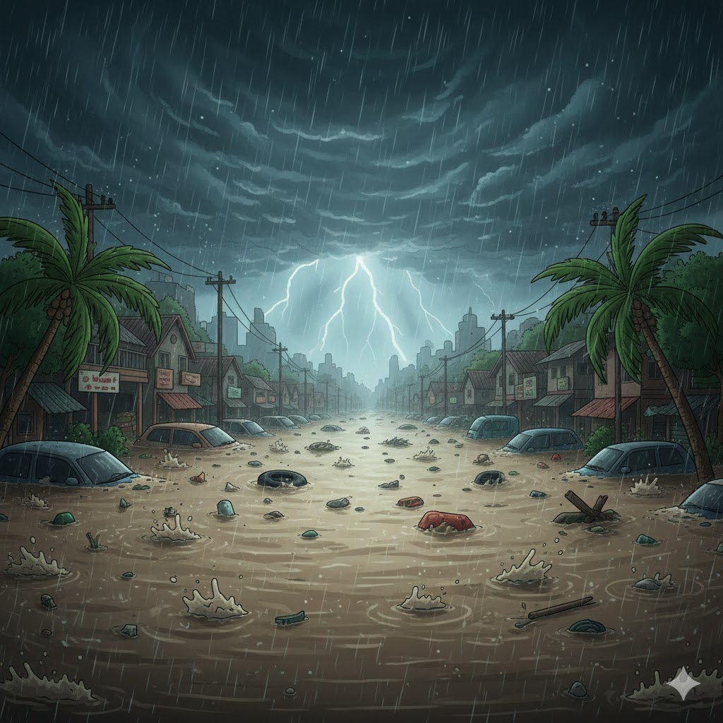 Awal Desember 2025, cuaca di wilayah Sumatera Utara memasuki periode hujan ekstrem. Dalam beberapa hari berturut-turut, hujan dengan intensitas tinggi mengguyur Kota Medan tanpa jeda. Hujan paling deras terjadi pada malam hari, membuat banyak warga tak sempat mengantisipasi datangnya banjir.