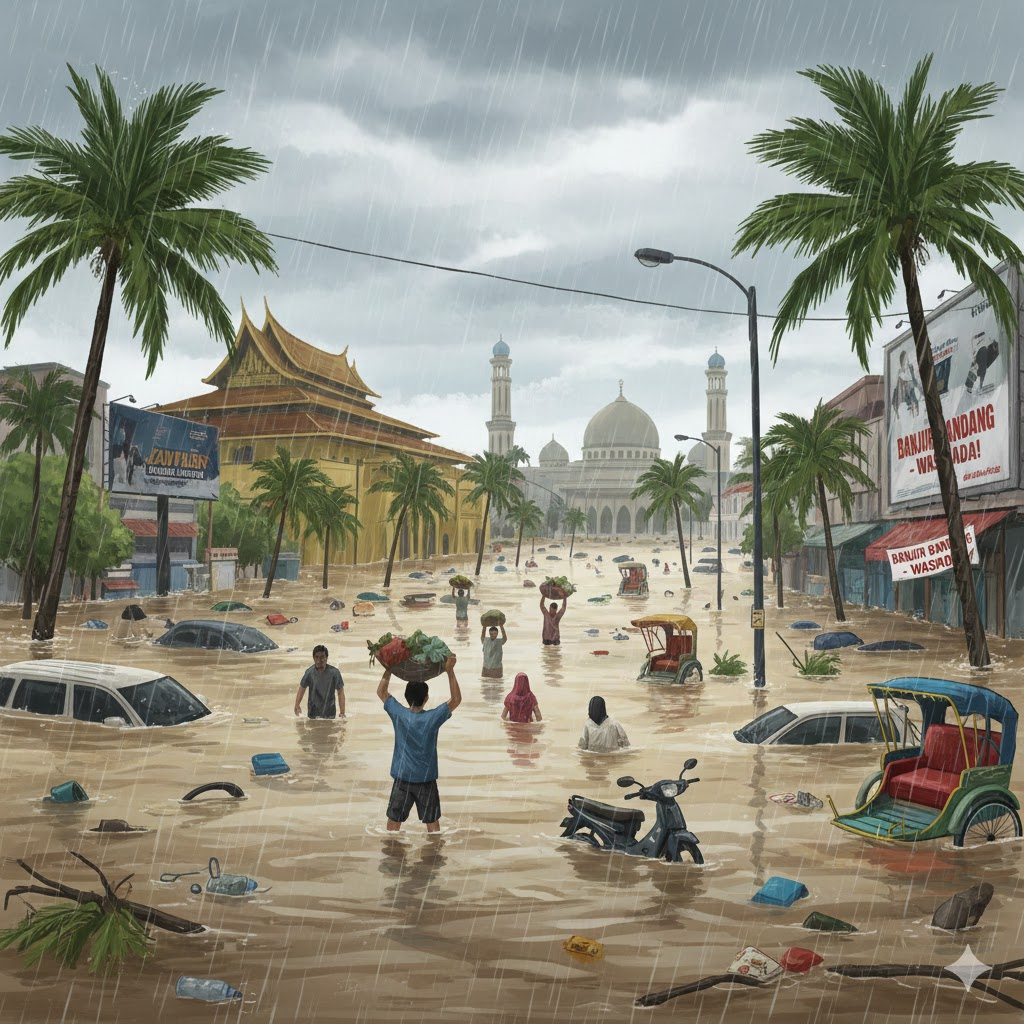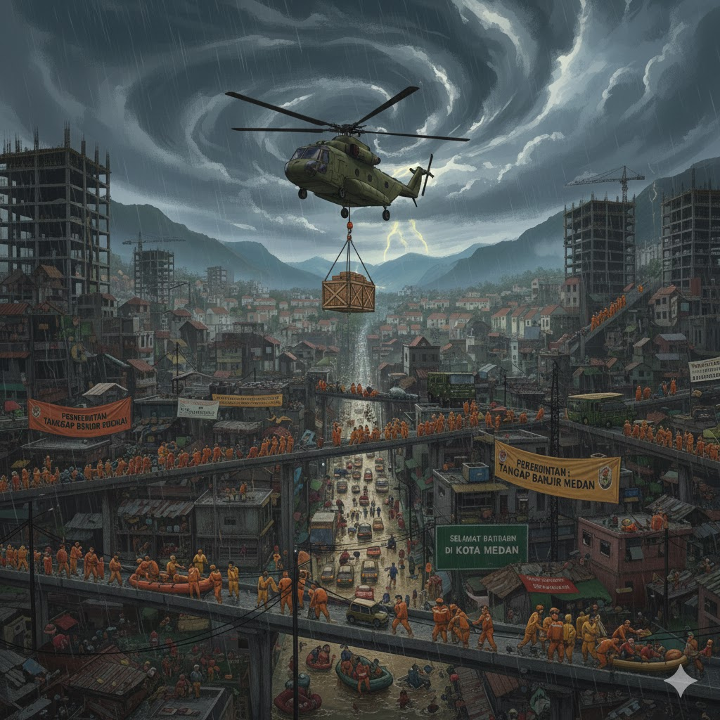 Banjir besar yang melanda Kota Medan pada akhir 2025 menjadi salah satu bencana terparah yang pernah dialami kota ini dalam satu dekade terakhir. Intensitas hujan ekstrem, diperparah dengan kondisi drainase yang sudah lama dikeluhkan masyarakat, membuat beberapa kecamatan terendam parah hingga ketinggian mencapai pinggang orang dewasa. Bencana ini bukan hanya mengganggu aktivitas warga, tetapi juga memicu situasi darurat yang memaksa pemerintah kota melakukan evakuasi besar-besaran.