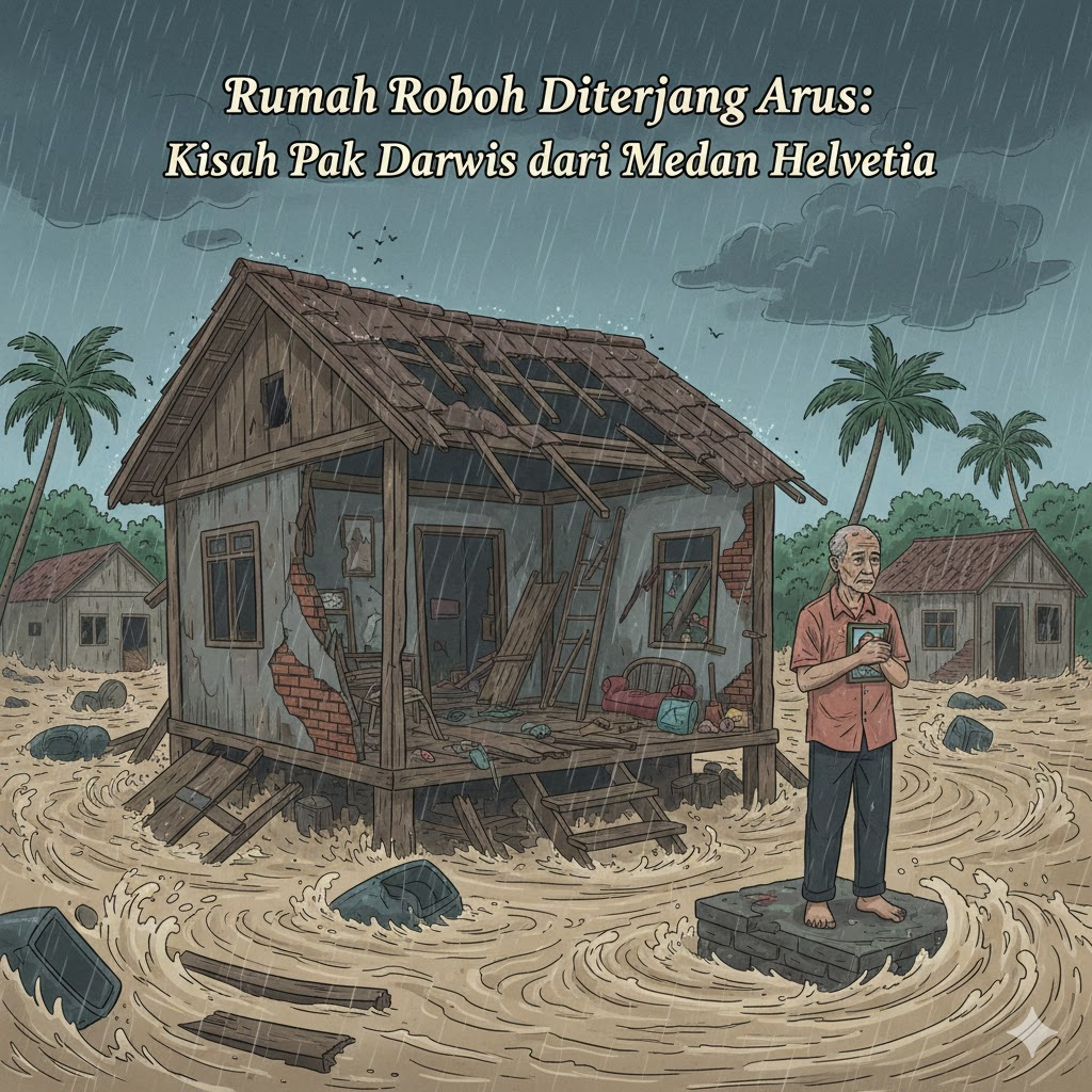 1. Rumah Roboh Diterjang Arus: Kisah Pak Darwis dari Medan Helvetia