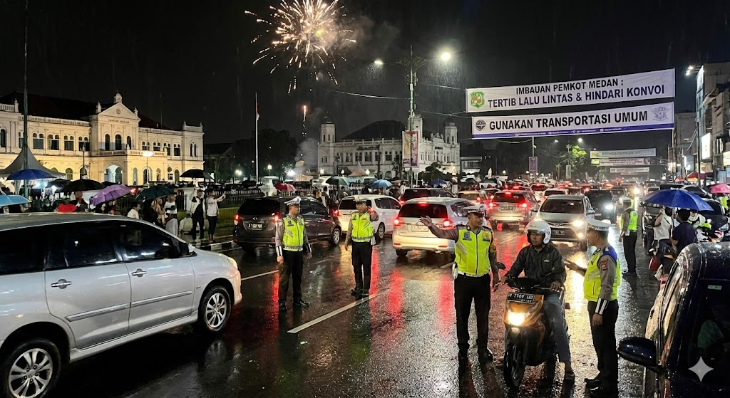 Pemerintah Kota Medan sebelumnya telah mengimbau masyarakat untuk merayakan pergantian tahun dengan tertib dan menghindari konvoi kendaraan yang berpotensi menimbulkan kemacetan serta gangguan keamanan. Warga juga diminta mempertimbangkan penggunaan transportasi umum untuk mengurangi beban lalu lintas di pusat kota.